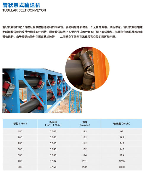 管狀皮蒂機打破了傳統運輸系統輸送物(wù)料的局限性。在物(wù)料輸送領域是一個全新(xīn)的突破。顧明思意。管狀皮帶機輸送物(wù)料即輸送機的膠帶包圍成圓柱形狀,順着輸送路線(xiàn)上布置的圍成的六角型托輥上輸送物(wù)料。按照指定的路線(xiàn)跨超障礙物(wù)運行,由于輸送的物(wù)料包屬在管狀膠帶中(zhōng),從而避免了物(wù)料在承載段和空段的灑落和外溢。